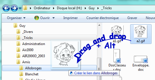 Quand on lâche, le raccourci est créé dans le répertoire Allobroges