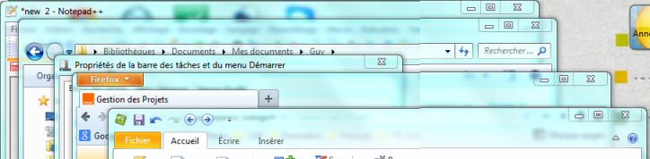 - Niveau inférieur :(Restaurer en version W10 !!) donne à la fenêtre, en plein écran, une taille intermédiaire (taille précédemment enregistrée) qui permet de voir partiellement les autres;