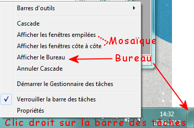 - Clic du bouton droit sur la barre des tâches