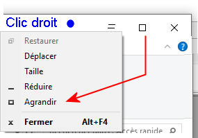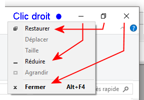 clic droit sur la barre de titre