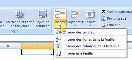 Insérer une cellule, une ligne une colonne
