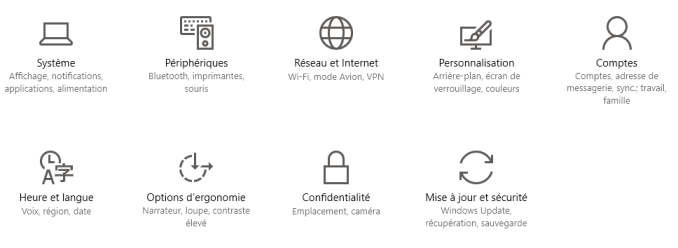 Chaque utilisateur peut modifier les paramètres de Windows10 selon ses préférences :