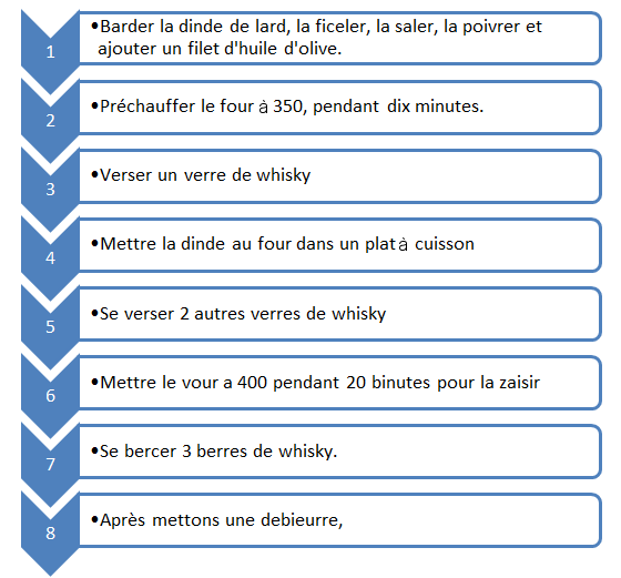 exemple : Algorithme de la préparation de la dinde au whisky