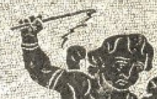 Cette mosaïque a été photographiée dans les ruines des thermes de Caracalla , quand on s'approche, on aperçoit les petits carrés de marbre de couleur juxtaposés, qui la composent.