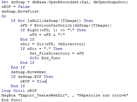 Programme de recherche d’un dossier et vérification de son existence réelle :